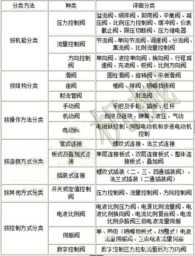 液壓閥可按不同的特征進(jìn)行分類,如表所示:
