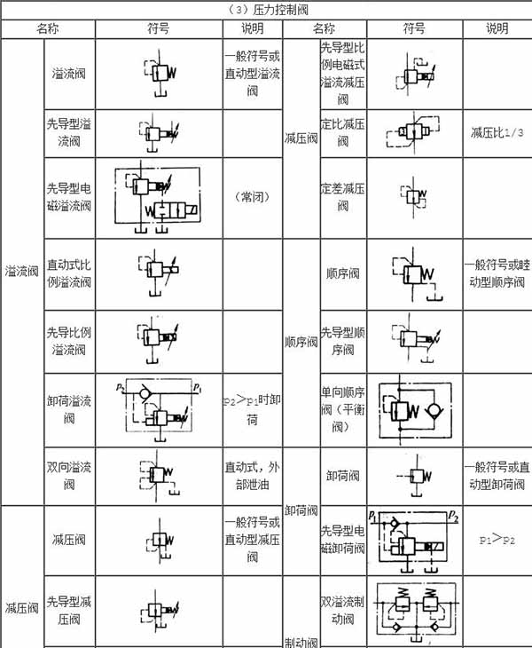 液壓磚機的圖形符號有三角形、直線和斜箭頭、圓弧箭頭等。固體三角形代表壓力傳遞的方向表示所使用的工作介質是液體。泵、馬達、液壓閥和電液閥都有這種功能元件的立體三角形;箭頭表示液體流動的通道和方向,在液壓泵、液壓馬達、彈簧、比例電磁鐵等上方添加的箭頭表明它們可以調整;單圓弧箭頭和雙向箭頭表示液壓馬達的旋轉方向,雙向箭頭表示它們可以正向反轉。